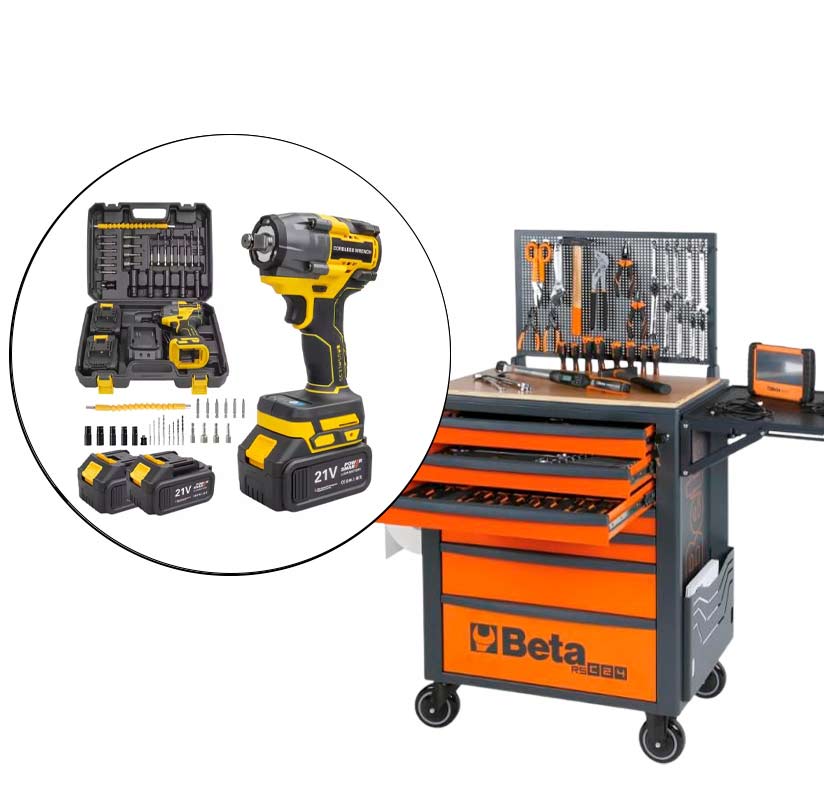 Betacab - Carrinho de Ferramentas c/ 333 Peças + Chave de Impacto Sem Fios c/ 26 peças