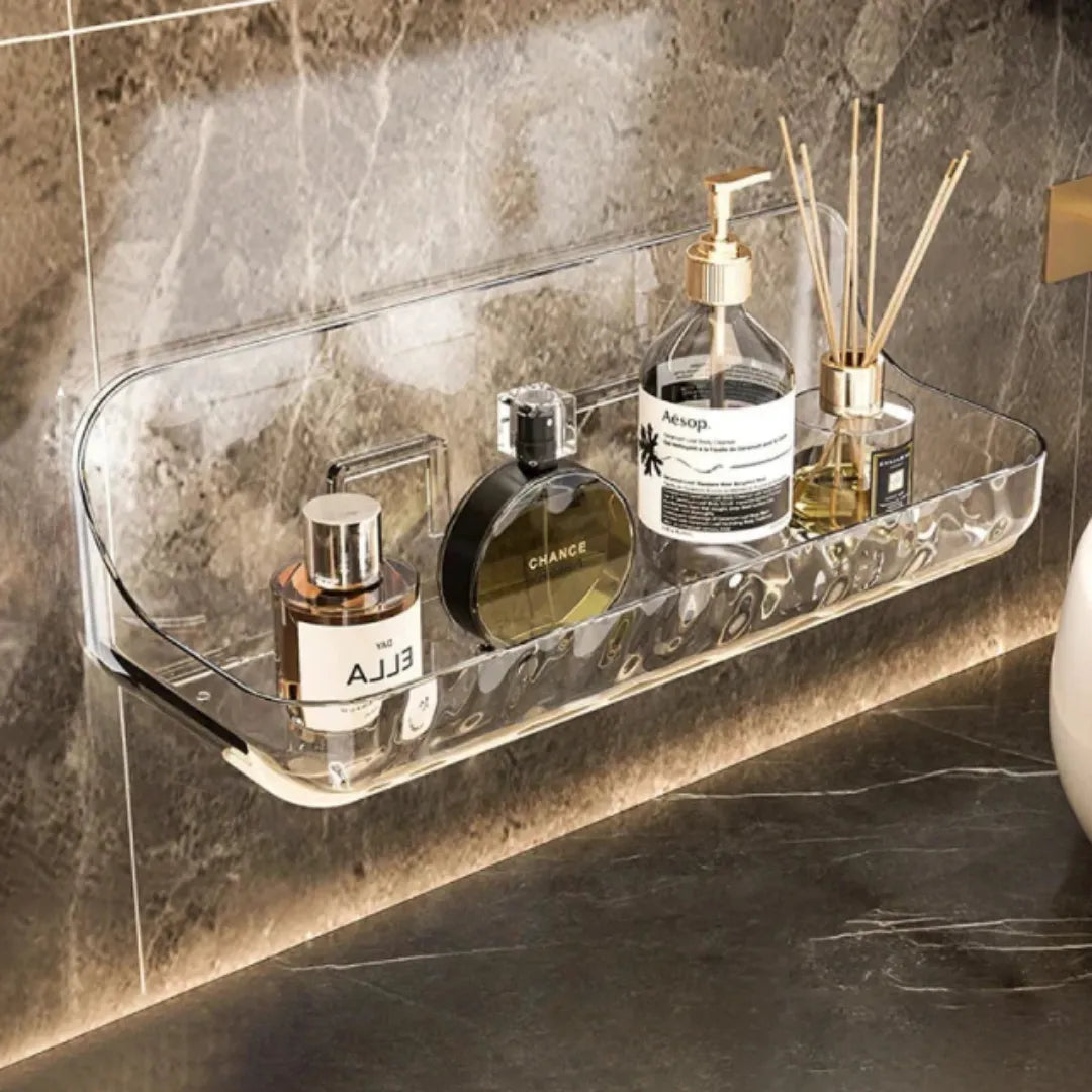 Organize seus itens de banheiro com estilo e praticidade usando a Prateleira Transparente para Banheiro Sem Furos Tazzi. Feita de acrílico durável, ela dispensa furos na instalação, preservando suas paredes e proporcionando um visual moderno e sofisticado ao ambiente.