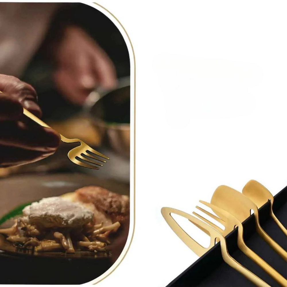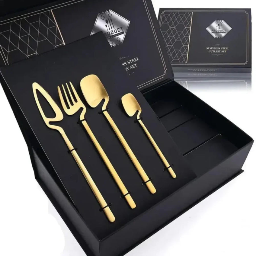Conjunto de Talheres Dourado Luxy 24 Peças + Brinde Caixa presente - Razu