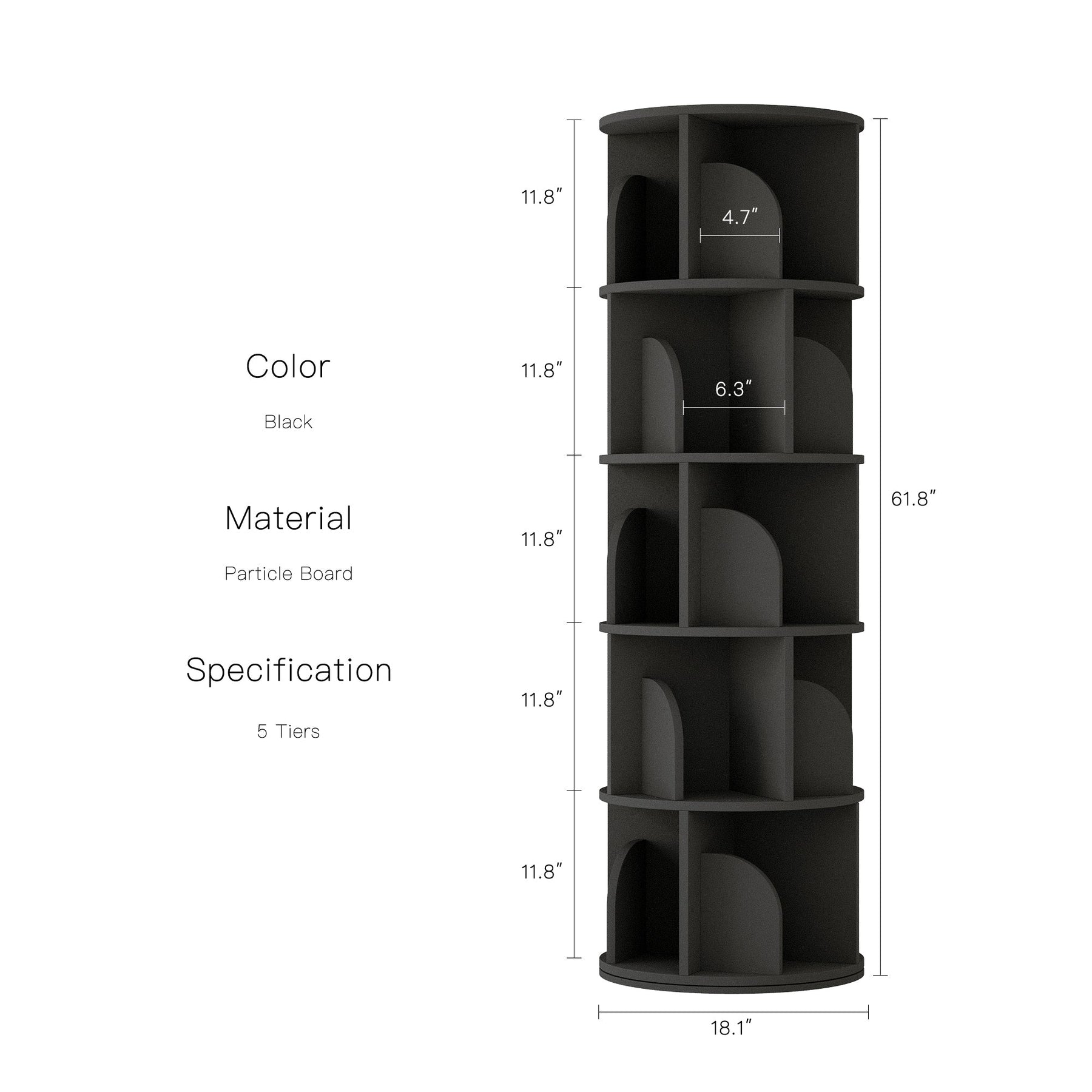 Estante Giratória 360° RAZU Circinus Core da Série Vortex em Aglo Preto – 5 Prateleiras