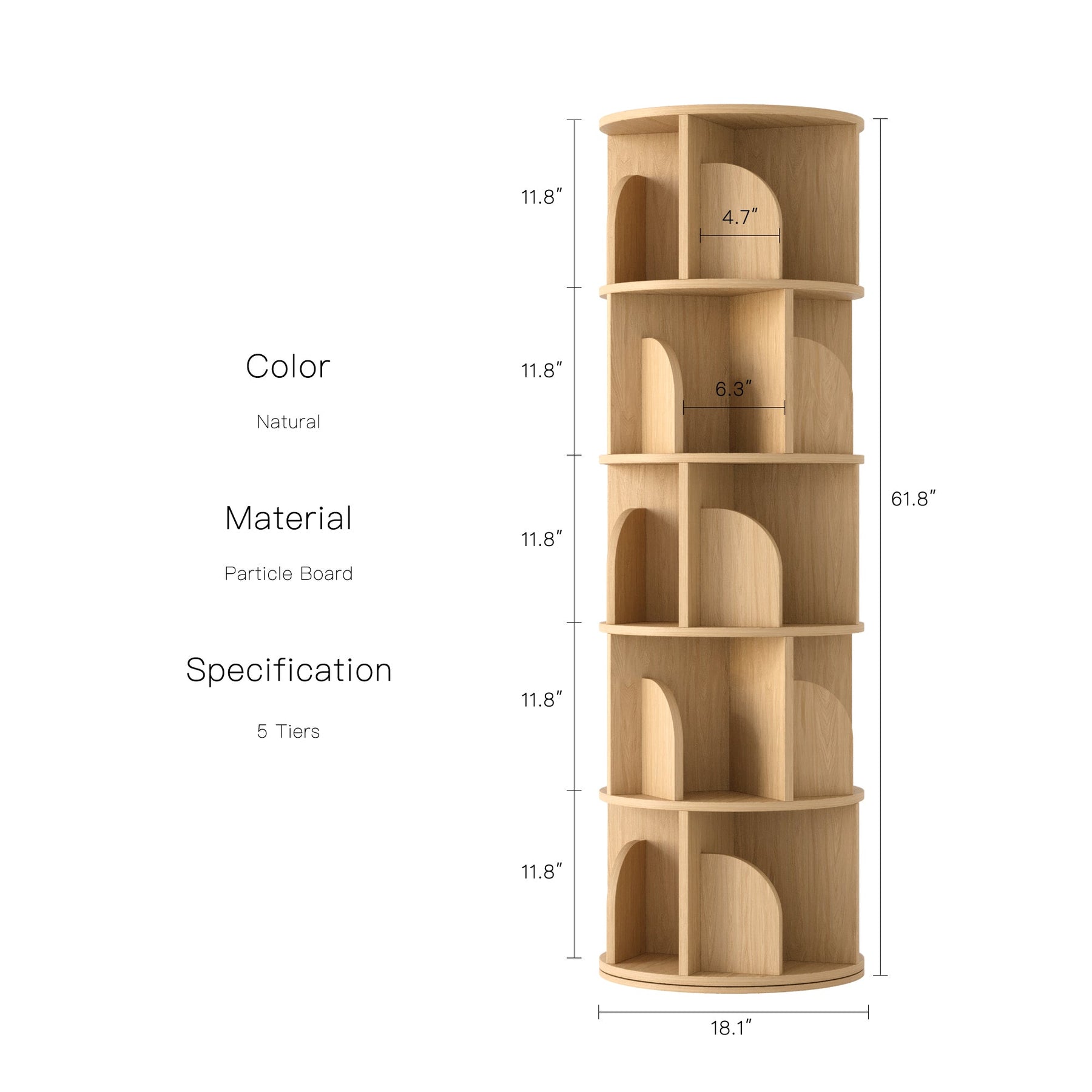 Esta estante giratória a 360° foi criada com foco no minimalismo moderno e funcionalidade. O elegante acabamento em madeira adiciona um toque de sofisticação a qualquer divisão, enquanto os compartimentos robustos são ideais para organizar livros, decoração e essenciais do dia a dia.