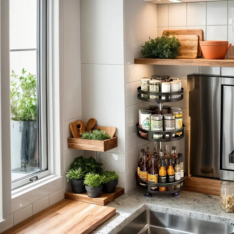 Com o Organizador Giratório de Bandeja - Tazzi, você pode transformar completamente o jeito de organizar sua casa. Ele é ideal não só para temperos, mas também para armazenar frascos, latas, itens de higiene ou pequenos eletrodomésticos. A capacidade de girar 360° elimina o esforço de procurar itens no fundo de prateleiras ou armários apertados.