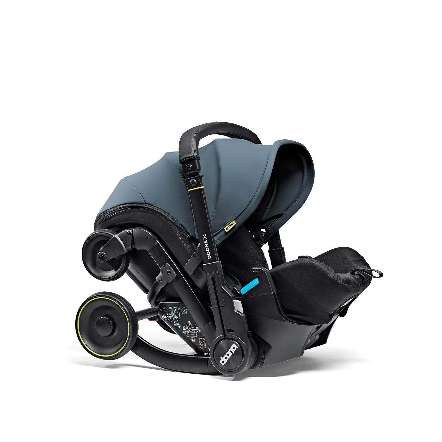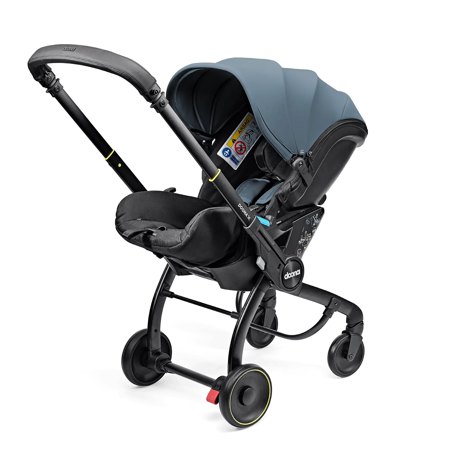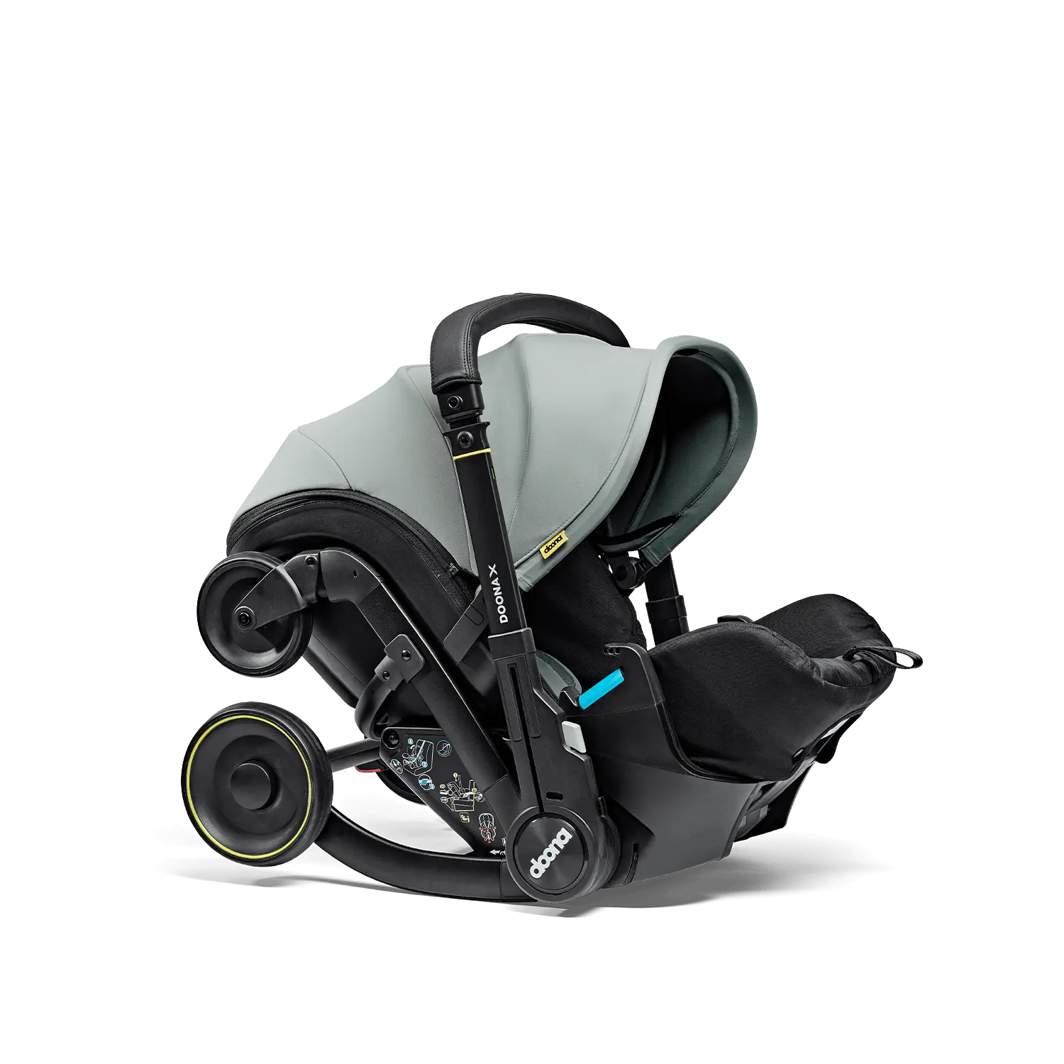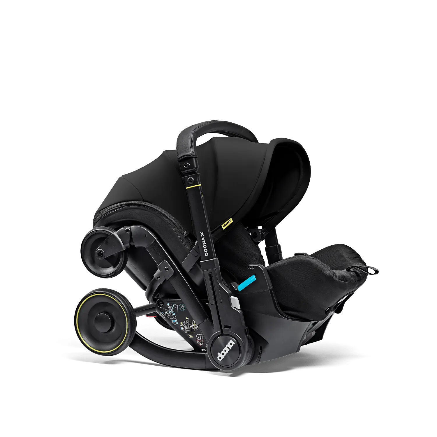 Com um simples gesto, a cadeira auto transforma-se num carrinho funcional e pronto a usar, sem necessidade de desmontagens, adaptadores ou despertar o bebé.